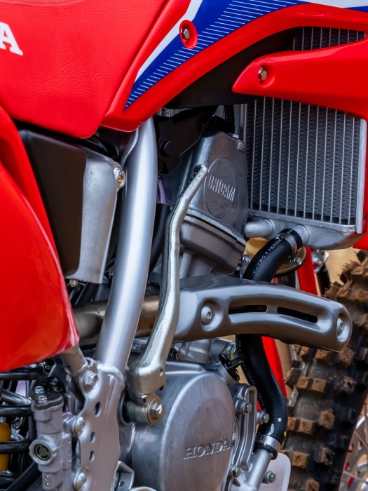 The CRF150R uses a carburettor featuring a “direct push” accelerator pump which gives you better, more immediate throttle response.